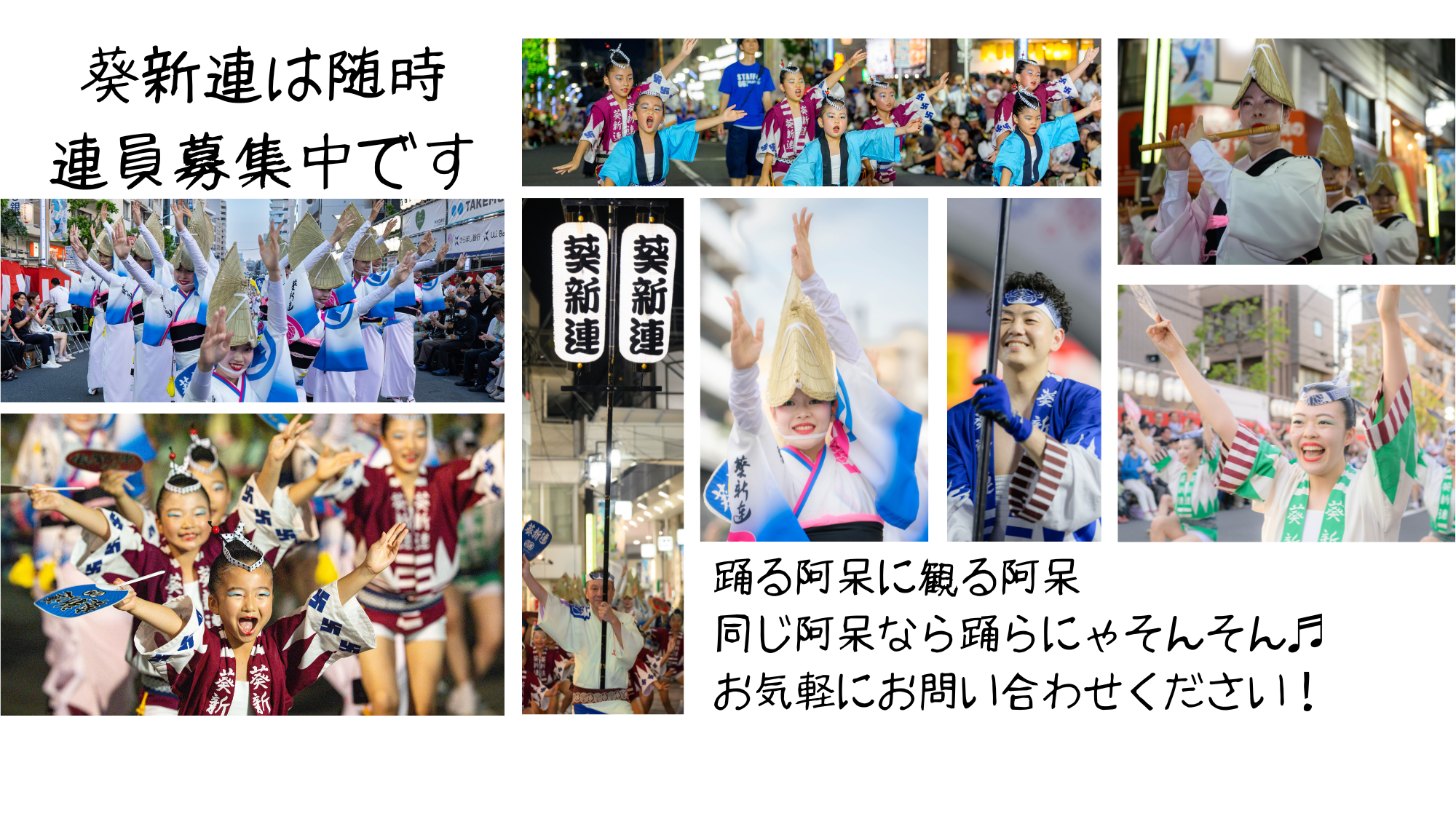 2016年で葵新連は結成50周年という節目の年を迎えました。これまで応援して下さった皆様、これからも応援してくださる全ての皆様へ、感謝の気持ちを忘れず連員一同更なる躍進を続けて参ります。